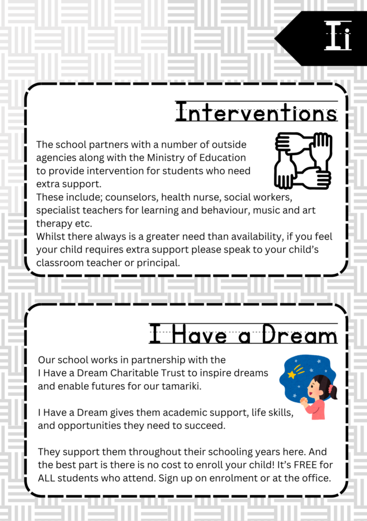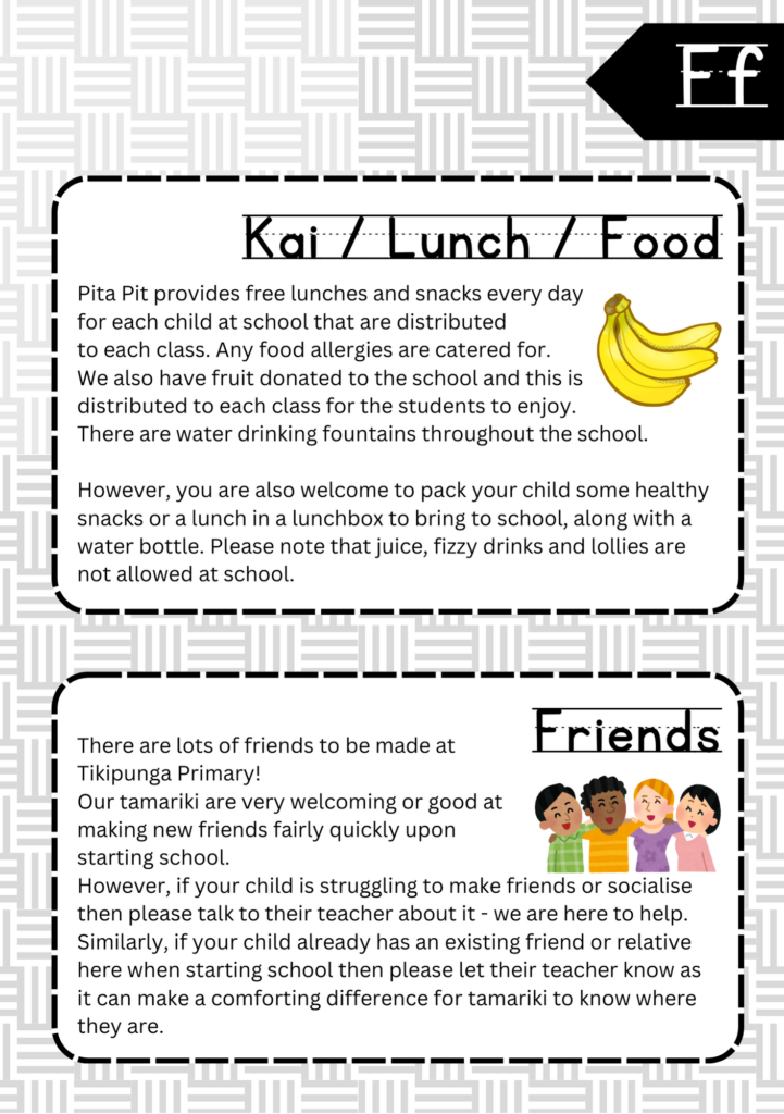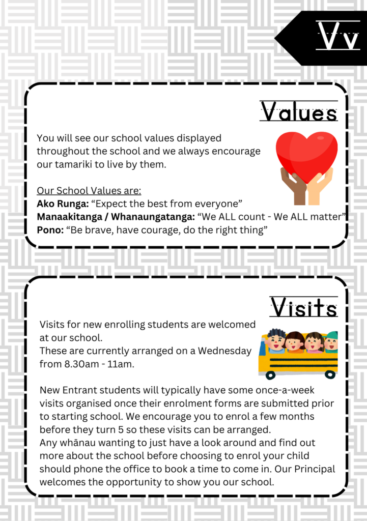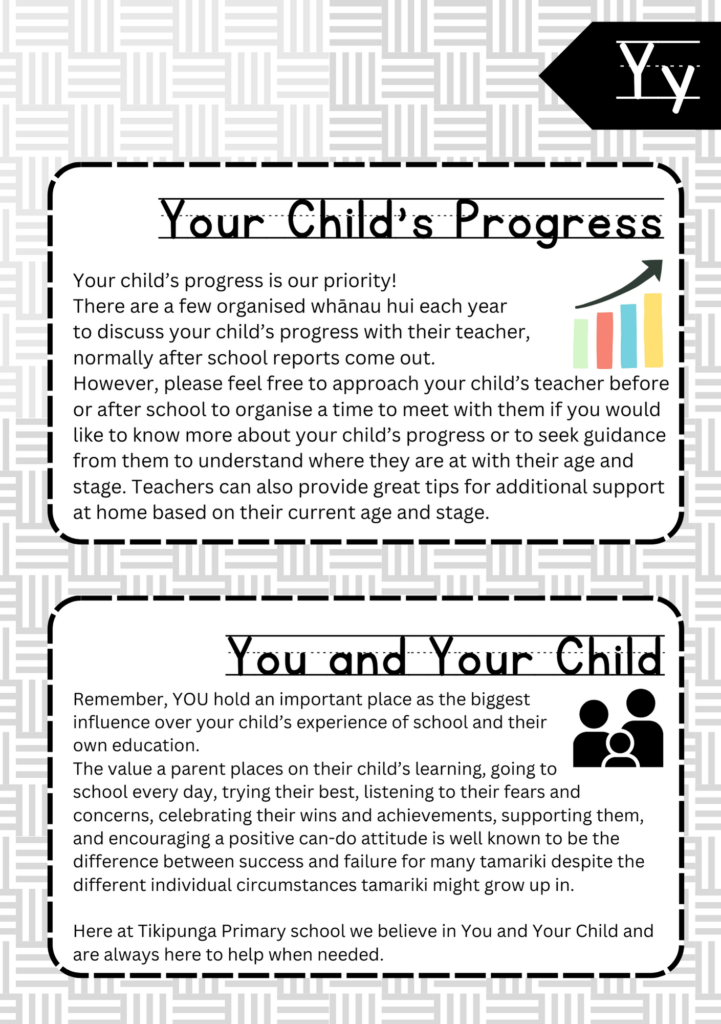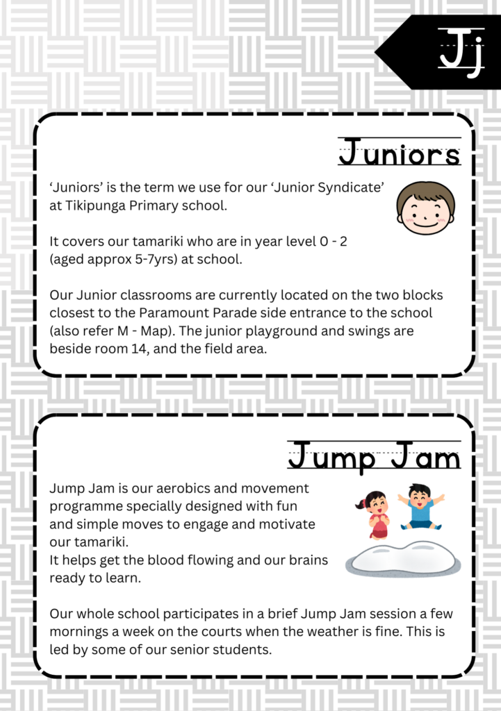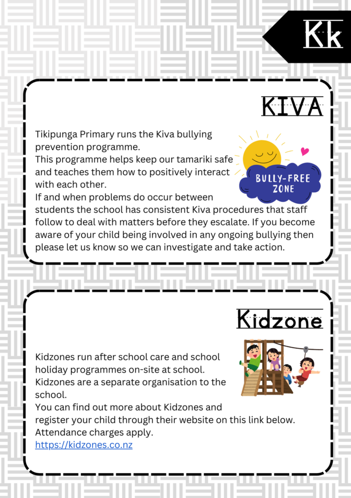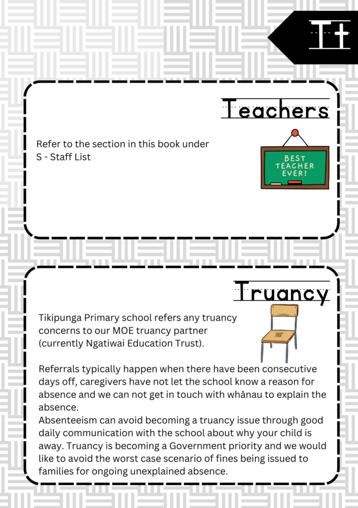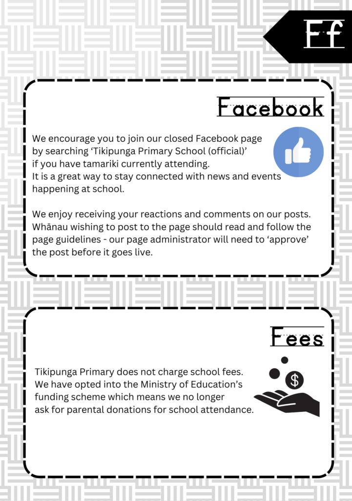 Welcome to the ABC’s of Tikipunga Primary. This is a complete Whānau Information Handbook featuring everything you and your child need to know when your tamariki are first starting their journey with us at Tikipunga Primary School.