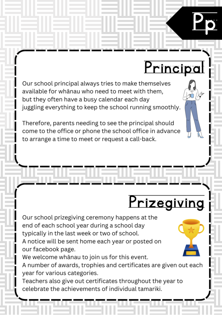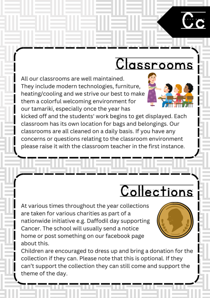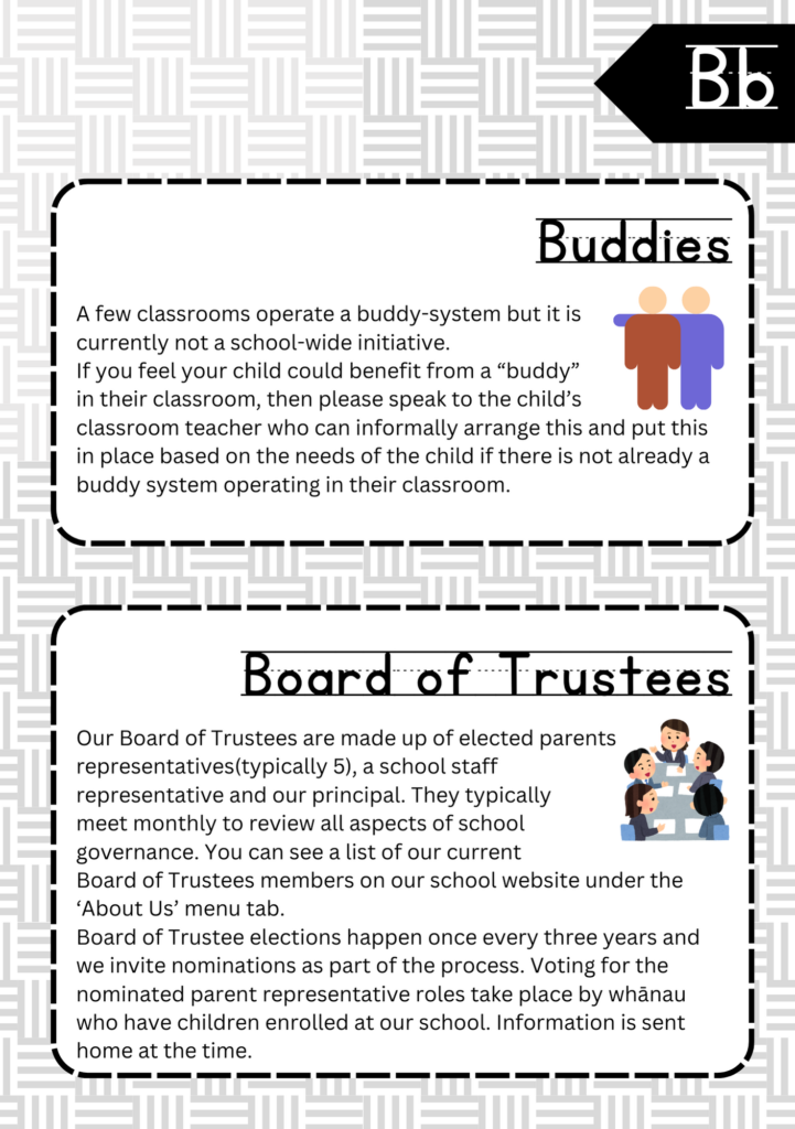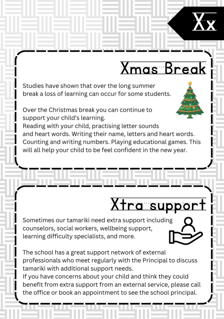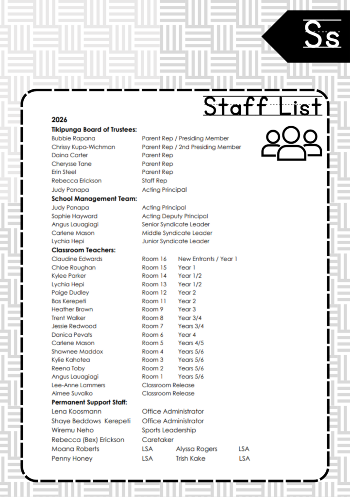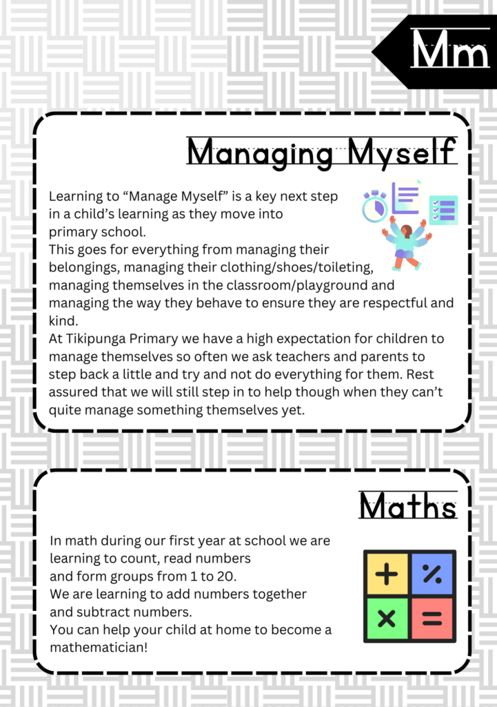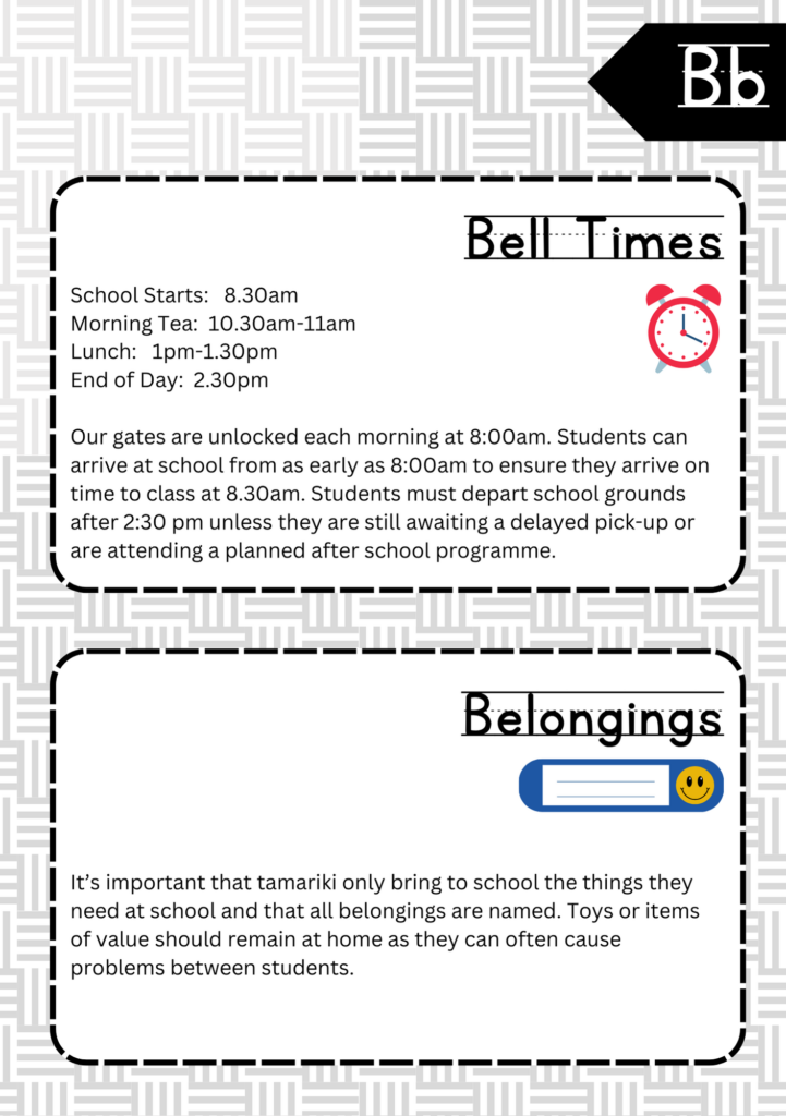 Welcome to the ABC’s of Tikipunga Primary. This is a complete Whānau Information Handbook featuring everything you and your child need to know when your tamariki are first starting their journey with us at Tikipunga Primary School.